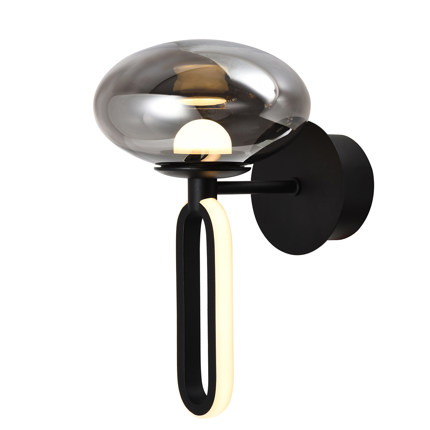 Коллекция Baron воплощает идеи синтеза и гармонии контрастов, где каждая деталь раскрывает свой характер. Необычные сочетания создают запоминающийся диалог между стеклянным выдувным плафоном со встроенным LED-модулем и декоративным элементом с LED-лентой по внешнему периметру. Черный матовый каркас контрастирует с зеркальной поверхностью дымчато-серого плафона, подчеркивая его блеск.