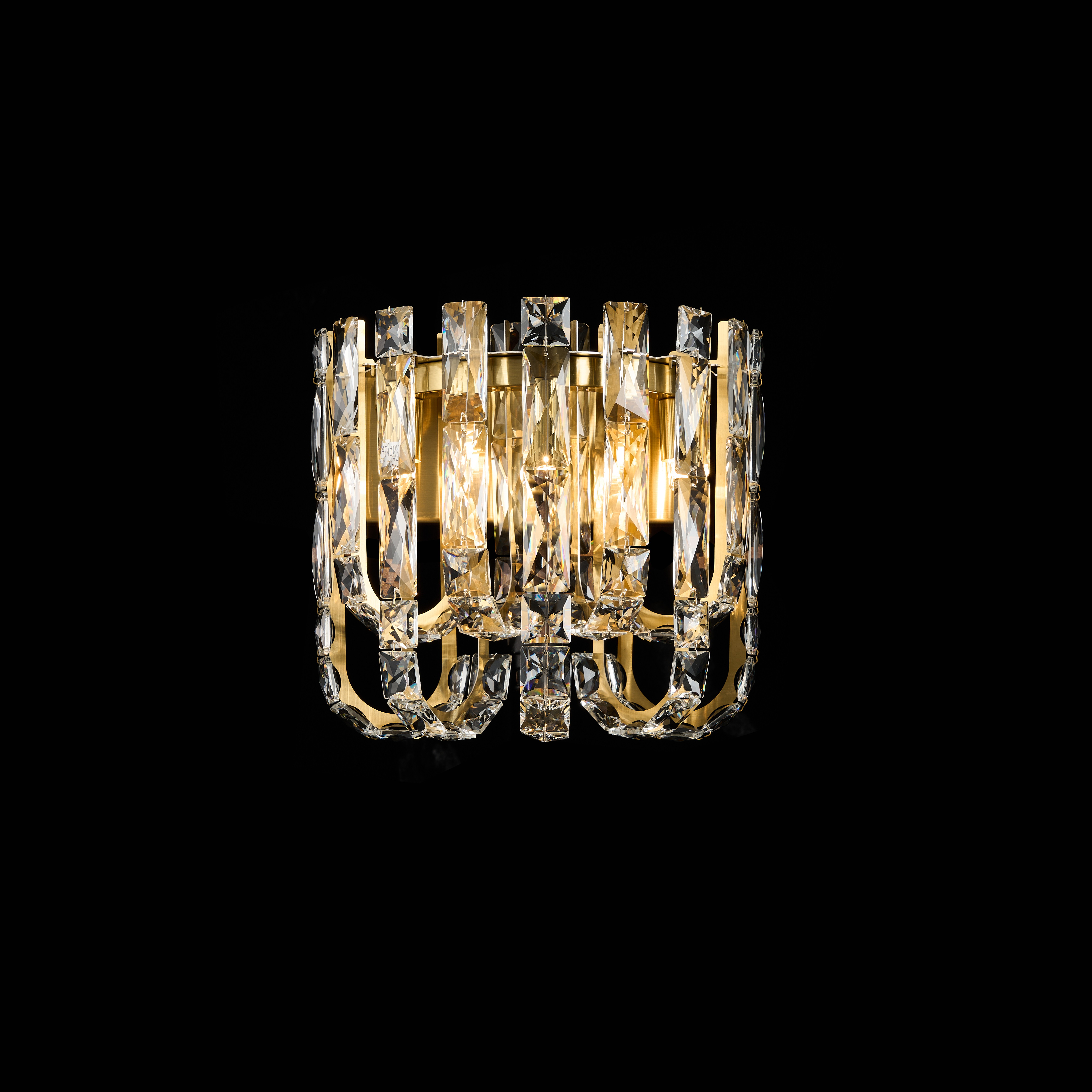 Коллекция Infinity включает в себя роскошные люстры и бра, золотой каркас которых украшен цепочками из скрепленных между собой пластин из прозрачного хрусталя высшего качества. Они крепятся к основанию с внешней и внутренней стороны и образуют арочки, которые создают эффект бликов и необычную игру света, что помогает подчеркнуть красоту и изысканность вашего интерьера.