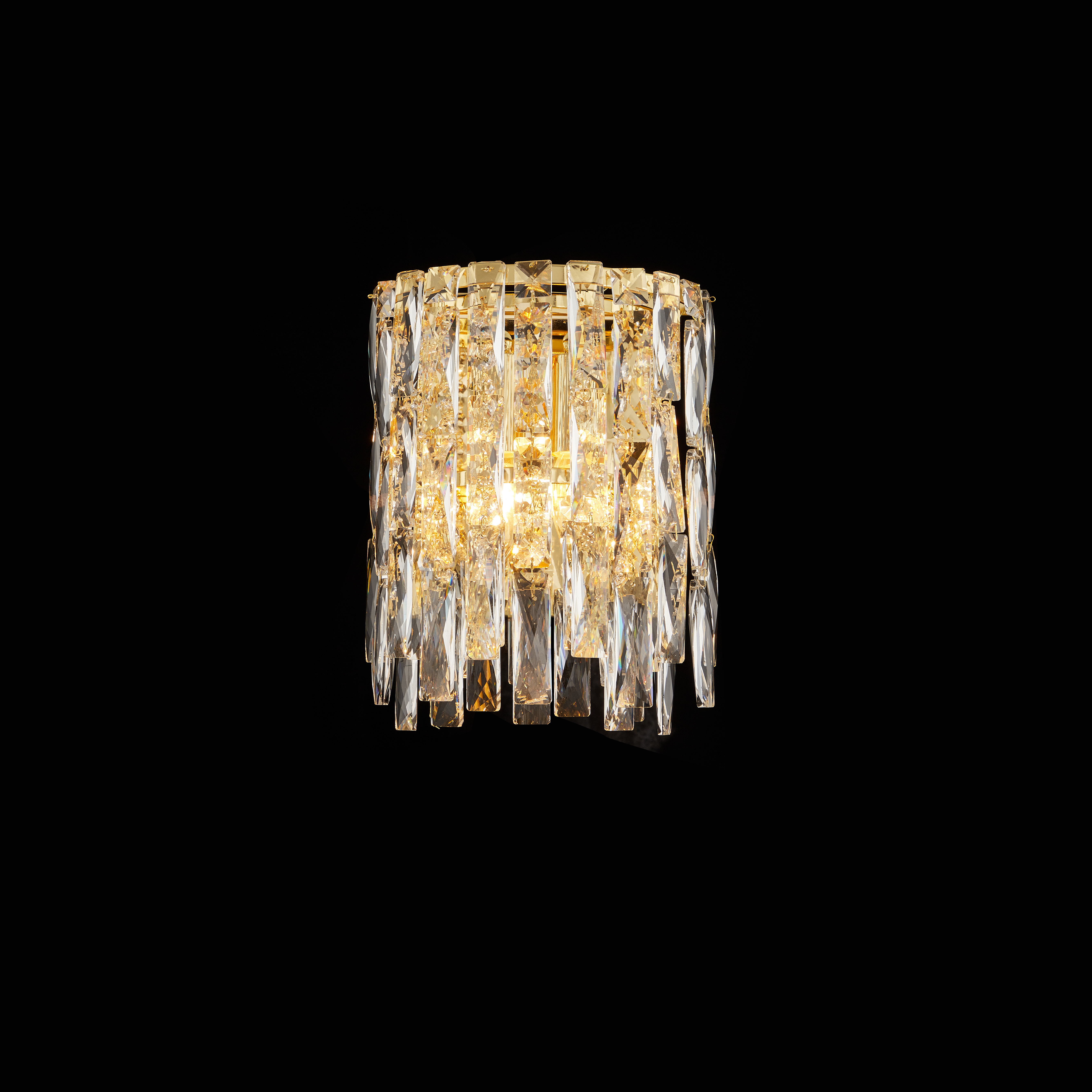 Коллекция светильников Robby включает в себя люстры и бра, щедро украшенные хрусталём. Прямоугольные медальончики из прозрачного хрусталя собраны в цепочки разной длинны и прикреплены к металлическому каркасу, окрашенному в глянцевый золотой цвет. Такое сочетание позволит мерцающим и переливающимся светильникам Robby создать в помещении атмосферу истинной роскоши и стать ключевым элементом вашего интерьера.