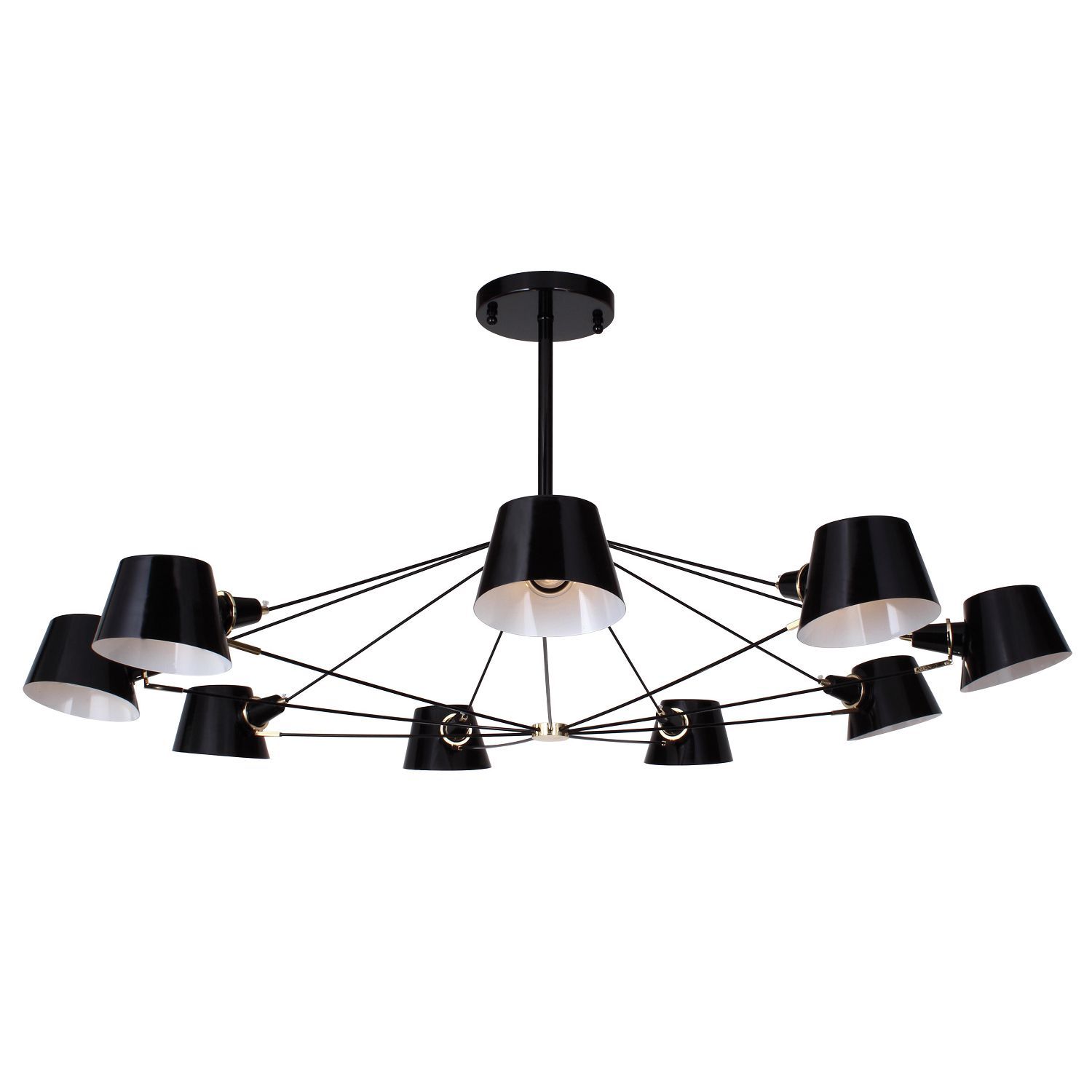 Eimer – одна из самых любимых и востребованных коллекций дизайнеров. Основание черного цвета и плафоны конусной формы выполнены из металла. Направленность плафонов вниз помогает люстре освещать достаточно ярко и мягко. Декоративные элементы на плафонах в цвете золота или хрома добавляют оригинальность этим светильникам.