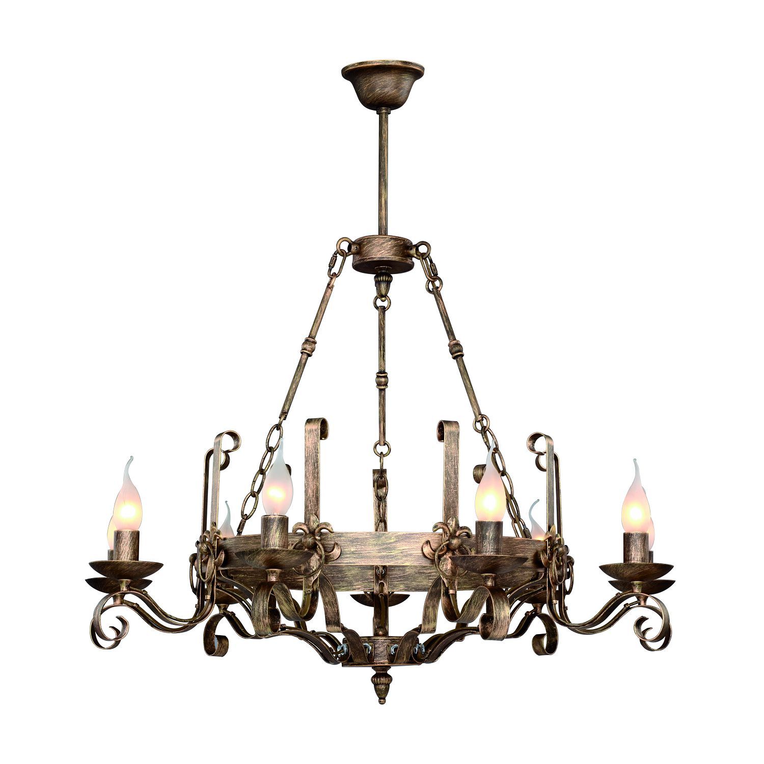 Коллекция Boulogne подойдет для воплощения светового дизайна в загородном доме, где натуральные природные оттенки в интерьере сливаются воедино с пейзажем за окном. Металлический окрас выполнен в коричневом цвете с золотым патинированием. Оригинальные рожки в стиле ковки создают интересный художественный акцент и визуальное равновесие, подчеркивая лампы в форме свечей, которые обеспечивают равномерное и уютное освещение