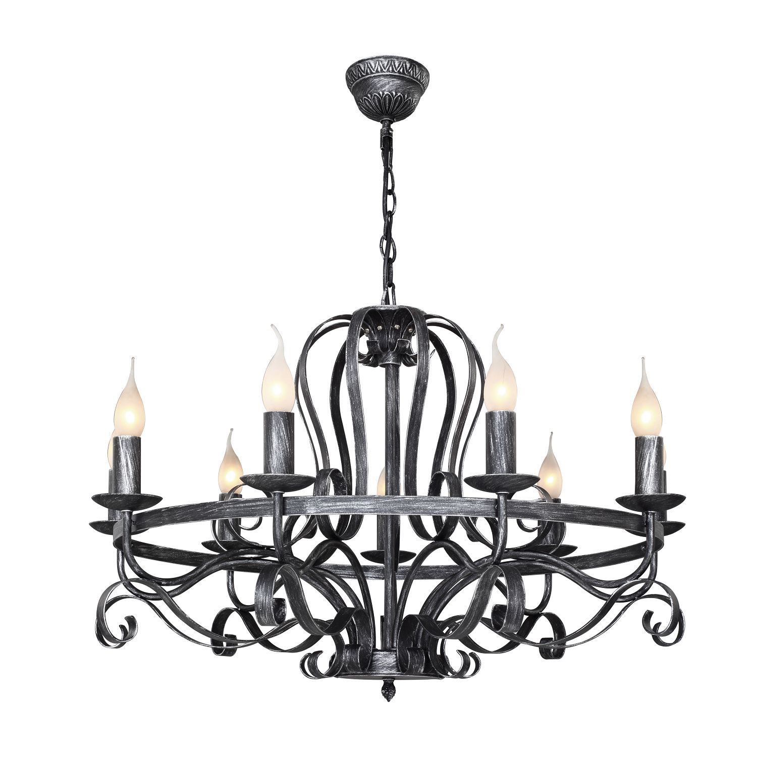 Выразительная коллекция светильников Palermo представлена в стильных черных тонах с серебряным патинированием, создающим эффект состаренной ковки. Открытые лампы гарантируют равномерное распределение света, обеспечивая качественное освещение пространства и наполняя помещение теплом и уютом. Лампочки в виде свечей идеально дополняют образ этой атмосферной загородной коллекции. Однако, вы также можете проявить изобретательность и выбрать альтернативную форму лампочек для создания уникального декоративного эффекта