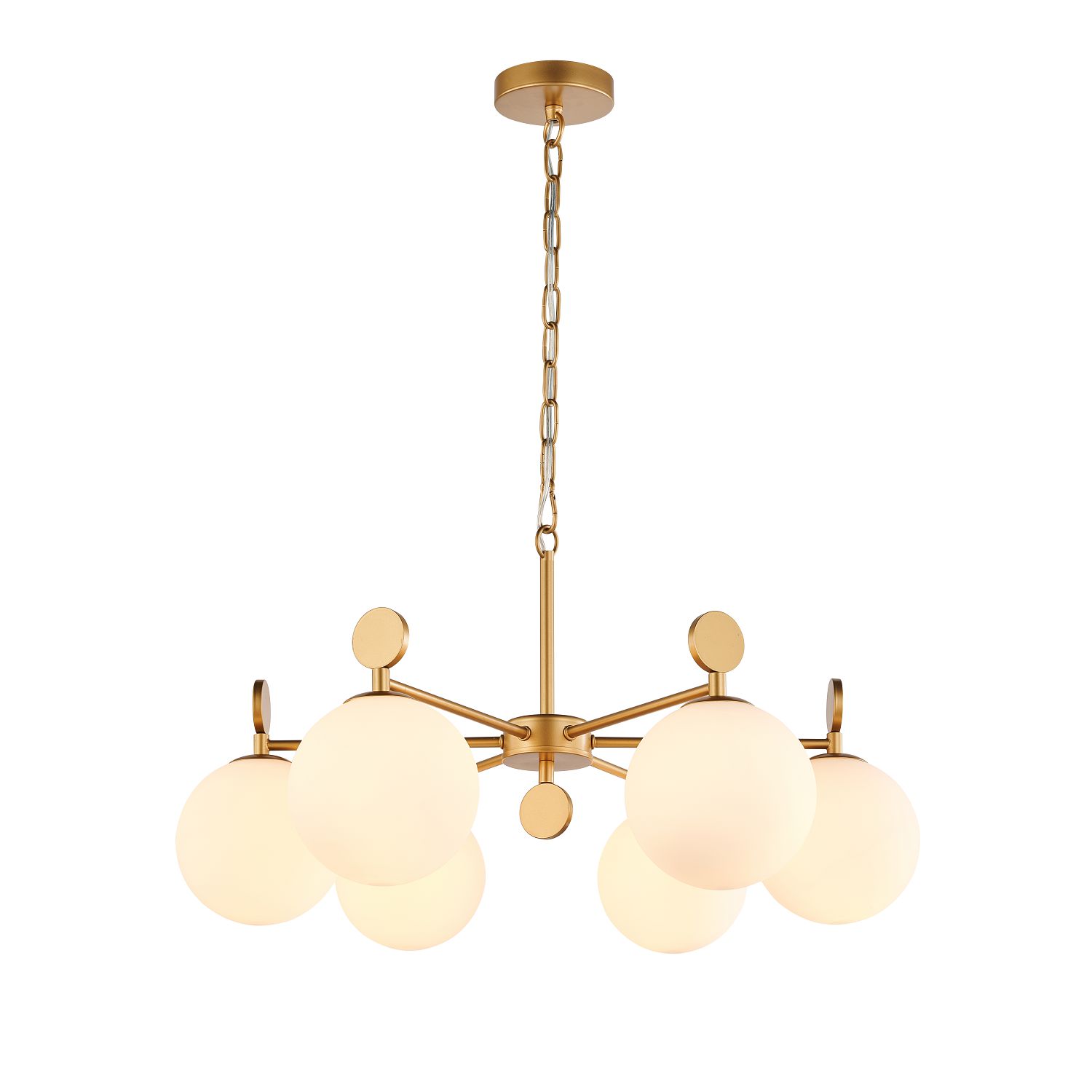 Коллекция Absolute выполнена в цвете окрашенное золото. Круглые выдувные плафоны дизайнерски обыграны круглым декором в виде металлических дисков. Интересным решением является возможность двустороннего монтажа люстры — как плафонами вверх, так и вниз.
