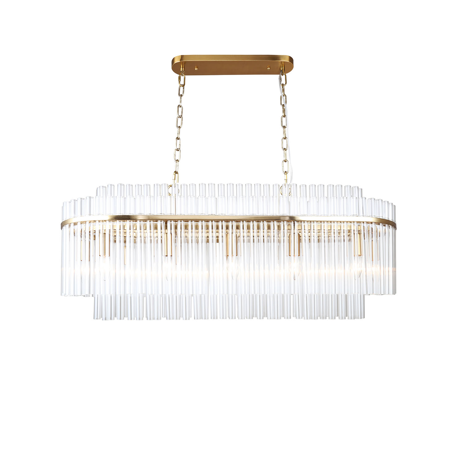 Коллекция светильников Rubum в американском стиле на цепочных подвесах создает впечатление воздушности и легкости. Латунный цвет отделки придает этим люстрам статусность. Многослойный декор из выдувных стеклянных трубочек добавляет интереса и создает ощущение динамики. Выдувные стеклянные трубочки это уникальный элемент декора, который создается вручную. Люстры из этой коллекции привлекут внимание своим нестандартным и оригинальным видом. Они станут идеальным дополнением к пространству в стиле американского интерьера.