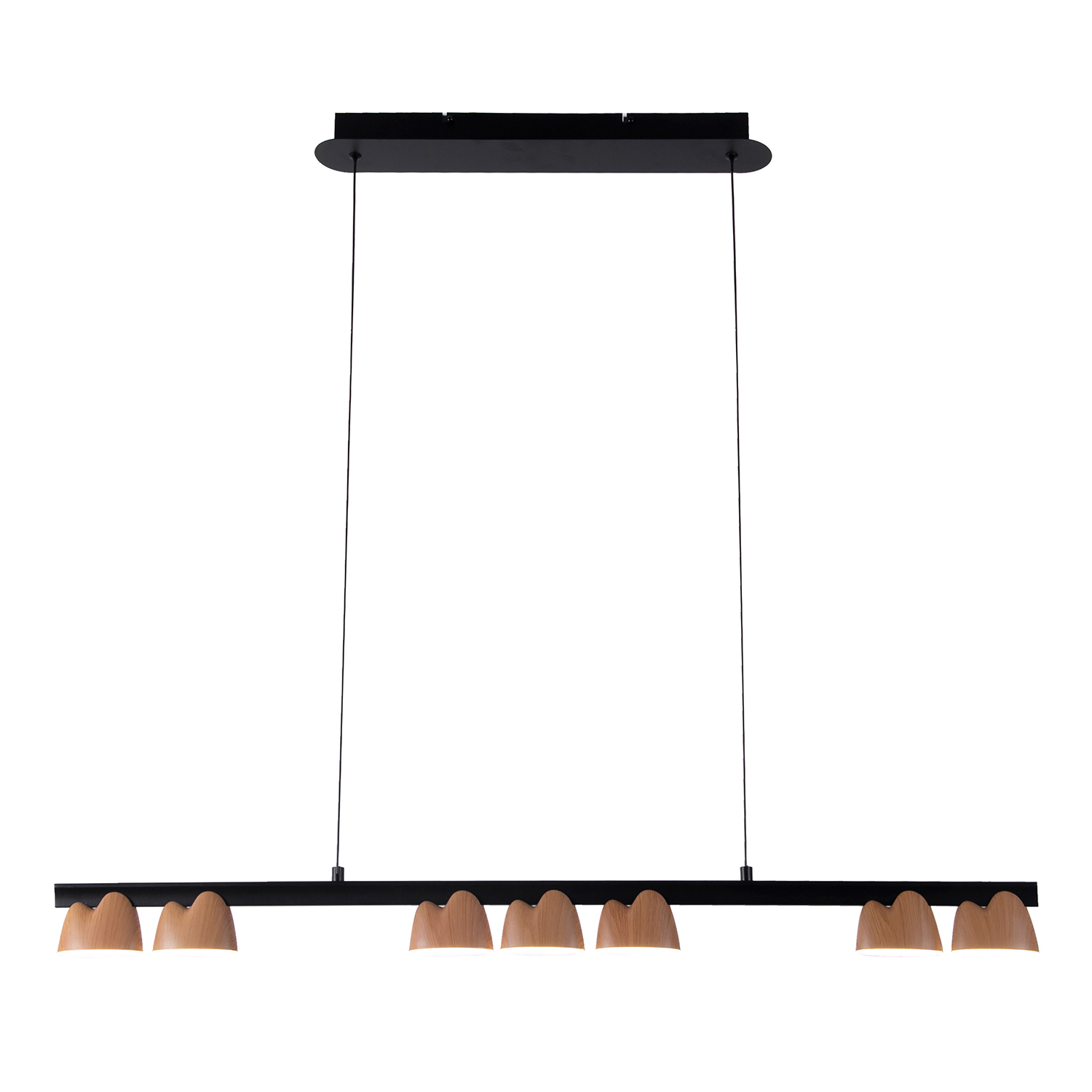 Коллекция Interline — это эффектное сочетание черной матовой арматуры и необычных плафонов цвета дерева, передающих его рисунок и структуру. Контраст материалов делает дизайн люстр одновременно строгим и уютным, что позволяет им гармонично вписываться в любой интерьер, от классического до современного. Диффузор из прозрачного акрила с бриллиантовым узором создает игру света и тени, придавая люстрам особую магию и защищая глаза от яркого света.