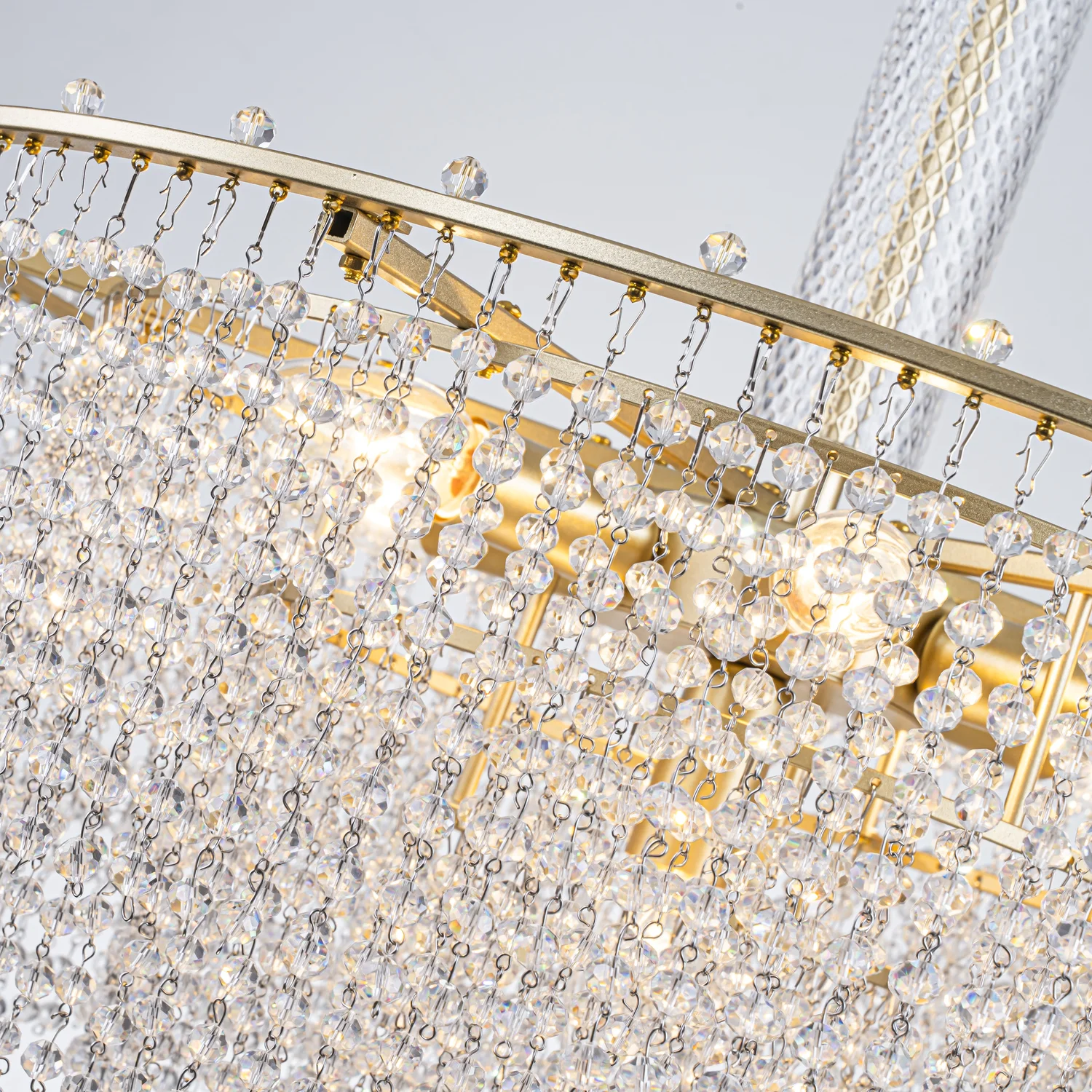 Коллекция Fringe предлагает светильники, в которых классические формы дополнены эффектными каскадами кристаллов. Основой служит металлический каркас с золотым покрытием, обеспечивающий прочность и четкость линий. Ключевой элемент — свисающие цепочки прозрачных бусин хрусталя, придающие интерьеру изысканности и блеска. В коллекцию входят настенные бра и многоярусные люстры разных диметров. Эти модели станут отличным декоративным акцентом в классическом интерьере и придадут ему роскоши и шарма.