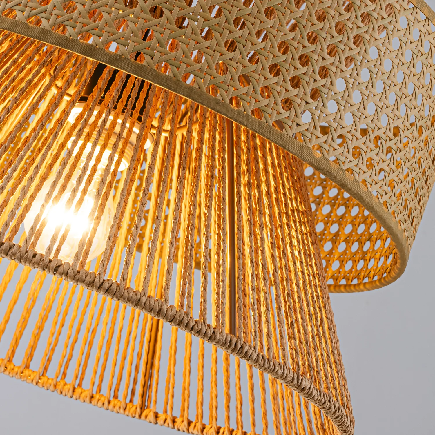 Коллекция светильников Organicum — это воплощение природной эстетики и современного дизайна. Особенностью коллекции являются абажуры, изготовленные из натуральных материалов: ткани или плетеных бумажных канатиков, дополненные декоративным поясом из плетеного бамбука. В коллекцию входят торшер, бра и подвесные светильники, которые прекрасно дополнят интерьеры в эко-стиле, бохо или скандинавском и помогут создать теплую и уютную атмосферу.
