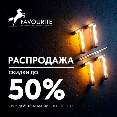 В рамках акции предоставлены скидки до 50% на более чем 60 артикулов светильников! Срок действия предложения — с 11.11.2025 по 30.12.2025. Полный перечень участвующих товаров доступен по ссылке и в прикреплённом файле.