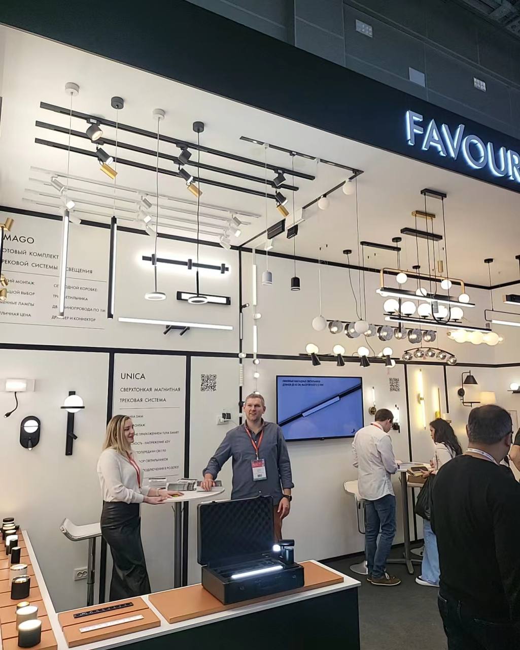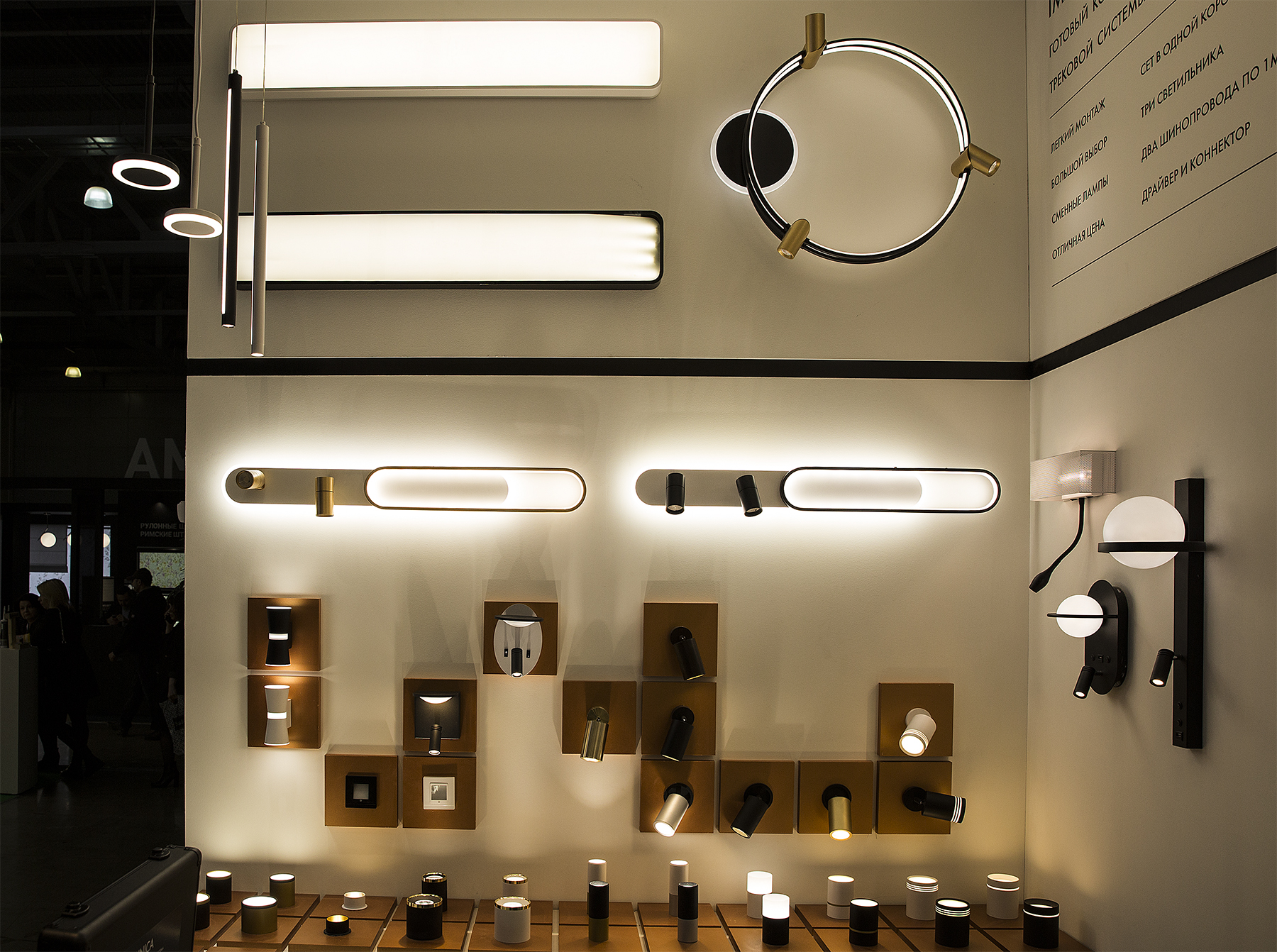 На выставке мы представили новинки в разных стилистических направлениях и нашу главную новость этого сезона – сверхтонкую магнитную накладную трековую систему UNICA.