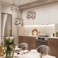 На кухне мы проводим большую часть времени. Поэтому, интерьеру этой комнаты нужно уделить особое внимание. Обратите внимание на замечательный проект теплой и уютной кухни от Татьяны Реслер. В проекте использовались подвесы Favourite коллекции Erbsen. Плафоны светильников выполнены из выдувного стекла. Благодаря своей зеркальной поверхности они отражают всё вокруг. Утонченные подвесы внесут нотку игривости в любой интерьер.