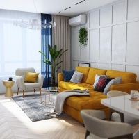 Проект гостиной от Юлии Зименковой. Яркий диван акцентирует на себя внимание и придает комнате выразительности. Замечательная люстра Salute (1637-18P) от Favourite привлекательно смотрится в интерьере и отлично освещает комнату благодаря ультраяркому LED освещению.