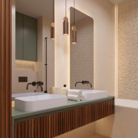 Цветовая гамма проекта вдохновлена природой: здесь преобладают мягкие оттенки, цвета земли, песка, камней и водной глади. Это создает атмосферу уюта и гармонии, которая помогает расслабиться и отдохнуть после рабочего дня.