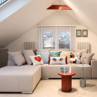 Чтобы эффективно и элегантно осветить мансарду, дизайнер выбрал функциональные и практичные светильники-прожекторы Reflector и встраиваемые светильники Mortise. Для того, чтобы сделать путь на мансарду более безопасным, эти функциональные светильники разместили над лестницей. Благодаря встроенному LED-модулю, они наполняют помещение ярким светом, а белый корпус помогает им не притягивать к себе излишнее внимание.