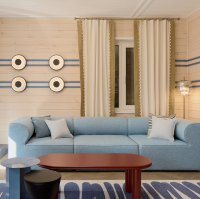 Украшением одной из зон стал торшер Reflex с двойным плафоном из янтарного выдувного стекла. Он добавил пространству теплоты и завершил образ гостиной как места для отдыха и вдохновения.