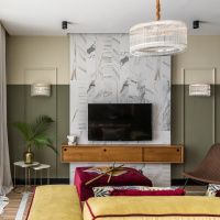 Дизайнер Богема Ардзинба создала уютный и современный интерьер, в котором сочетаются сразу несколько актуальных стилей. В этой яркой квартире удалось реализовать комфортное пространство для всех членов семьи. Светильники Favourite коллекции Negociant (2094-6P, 2094-2W) отлично дополняют интерьер гостиной. Тонкие стеклянные трубочки, нанизанные на каркас и изогнутые по особой форме, создают оригинальный световой эффект.