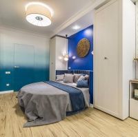 17 кв. м. — это комфортно и достаточно для семьи из 4-х человек. Скажете, это не правда? Думаете, там неудобно? Уверены, что это будет не эстетично? Школа ремонта бросила очередной вызов! Хотели гардеробную? Есть гардеробная! Хотели игровую? Получите! Хотели море? Да вот же оно! Хотели романтики? ...Вместе с дизайнерами Еленой Тамбиевой и Натальей Водопьяновой мы превратили скептиков в единомышленников, комнату, недостаточную для жизни, в многофункциональную и полноценную территорию счастья. Счастье осветили светильники Favourite. В интерьере несколько сценариев освещения: первый — большая потолочная люстра, оборудованная тремя точечными светильниками снизу, светодиодной лентой сверху и традиционными внутренними лампочками, которые прикрыты драпировкой абажура. Таким образом, одна люстра обеспечивает три различных характера освещения. Вторым пунктом сценария являются направленные светильники над изголовьем кровати, они позволяют читать ночью, не мешая при этом окружающим. Третьим номером программы освещения стали точечные светильники, без которых теперь редко обходятся интерьеры, они разместились над детскими письменными столами, кроватью и комодом.