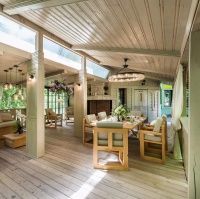 Красивый загородный дом с просторной верандой. Его получила по наследству от бабушки несколько лет назад ветеринарный врач Анна Булат. Знакомые считают Аню трудоголиком. У нее нет времени даже на личную жизнь, чего уж говорить о строительстве. Поэтому нас попросили довести до ума хотя бы веранду. В доме сразу появились мужские руки, то есть, руки наших строителей. Веранда представляла собой 46 кв.м самодеятельного деревянного зодчества, была унылой и неприветливой. Мы заставили Аню понять, что жизнь-это не только работа! Это еще и приятный отдых! Мы сделали такую веранду, куда отныне будут стремиться старые друзья и новые приятели очаровательной Ани. Долой одиночество! Да здравствует бурная личная жизнь!